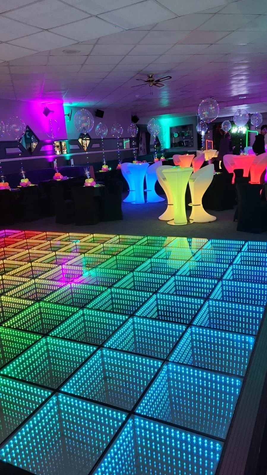 Put on the headphones and let loose on our Silent Disco and Light up infinity dance floor!
